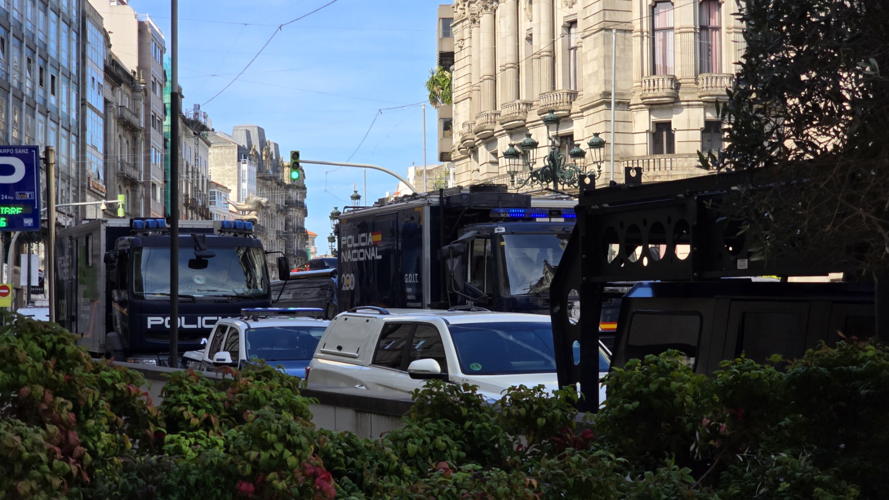 Σε πολλά σημεία της πόλης κινούνται συνεχώς αστυνομικές δυνάμεις, ενώ ελικόπτερα περιπολούν πάνω από το Βίγο, παρακολουθώντας την κίνηση και διασφαλίζοντας την ομαλή ροή του κόσμου.