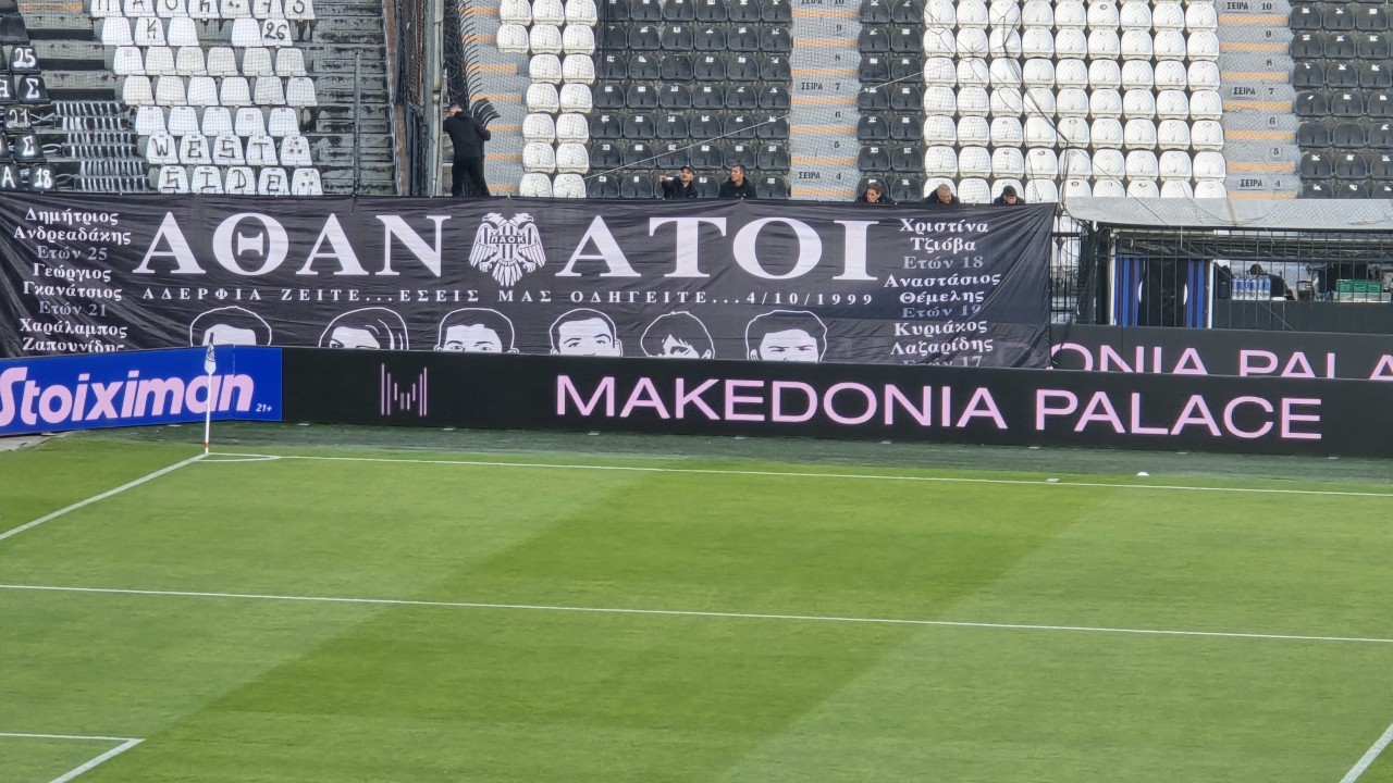 Ο Δικέφαλος μια μέρα μετά τη μαύρη επέτειο, υποδέχεται τον Ολυμπιακό στο ντέρμπι της 6ης αγωνιστικής της Super League, και η Τούμπα δεν θα μπορούσε παρά να τιμήσει τη μνήμη αυτών των παιδιών, που ποτέ δεν ξεχνά.