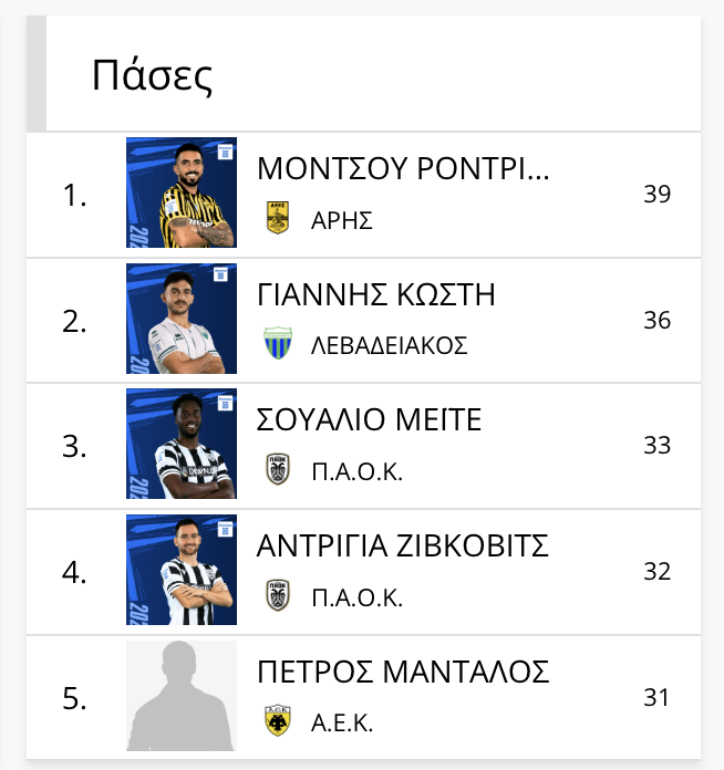 Ο Μεϊτέ βρίσκεται στην 3η θέση με 32 σωστές μεταβιβάσεις και ο Αντρίγια στην 4η με 32!